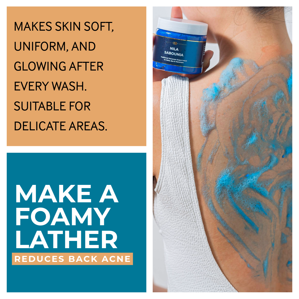 This traditional body soap, infused with the illuminating power of Nila powder, is more than ordinary cleansing. Experience a luxurious lather that nourishes and revitalizes, while antioxidants unveil a luminous, even-toned complexion.